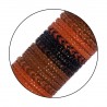 Pulseras variadas fabricadas en imitación cuero, combinando distintos tipos de pasados a mano sobrios y elegantes sobre una gama de colores marrones y negros. Disponible en tubos de 25 y 50 uds.