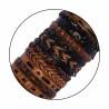 Pulseras de anchura especial realizadas en imitación cuero combinando distintos trenzados, pulseras planas y partes en lino. Colores marrones y negros. En tubos de 25 uds.