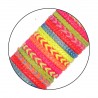Pulseras fabricadas en material textil, en colores variados y con motivos étnicos. Disponible en tubos de 25 y 50 uds.